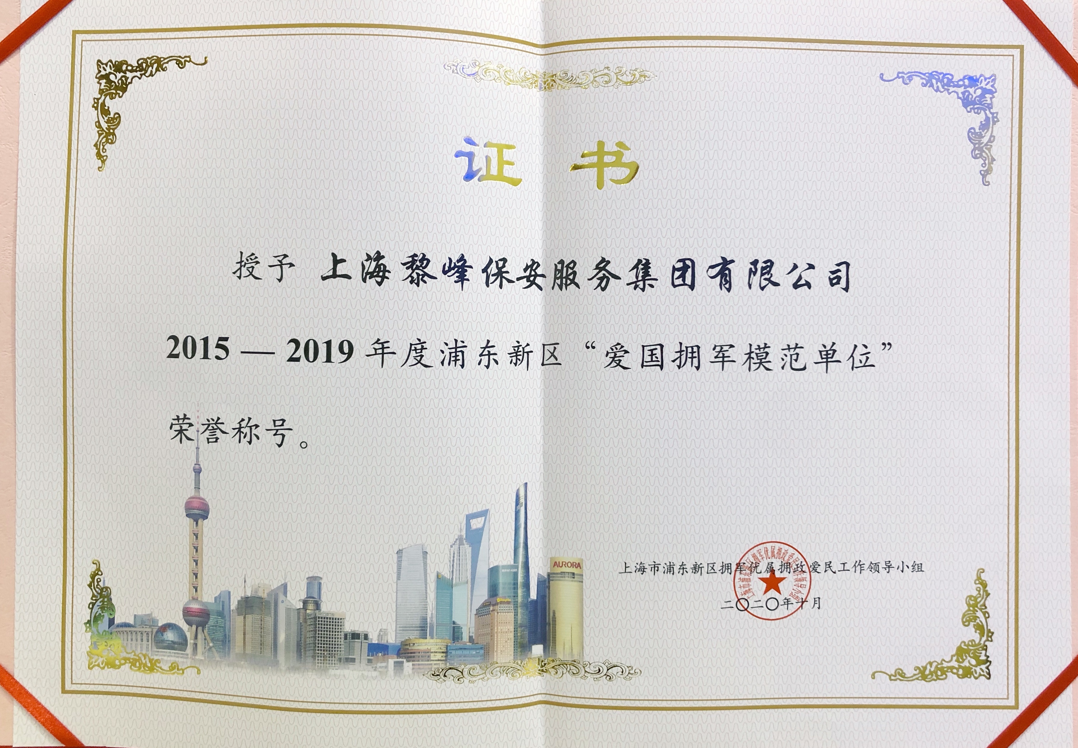 2015年 獲得上海市浦東新區(qū)“文明單位”稱(chēng)號(hào)的首家保安服務(wù)公司